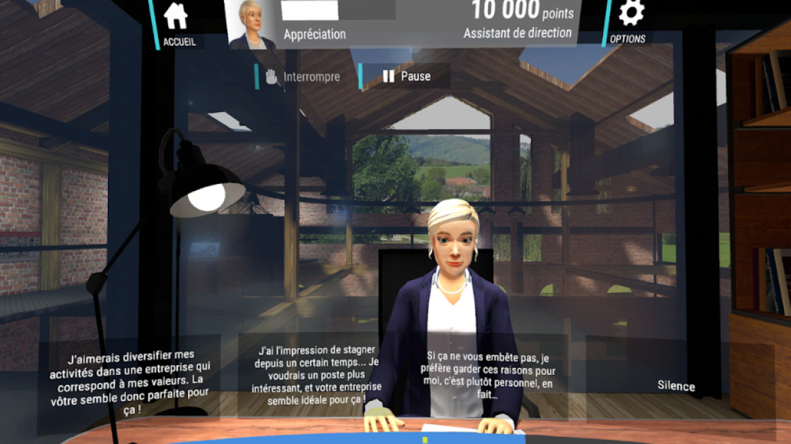 Pôle emploi met à la disposition des demandeurs d’emploi un serious game en VR qui permet de simuler un entretien de recrutement.